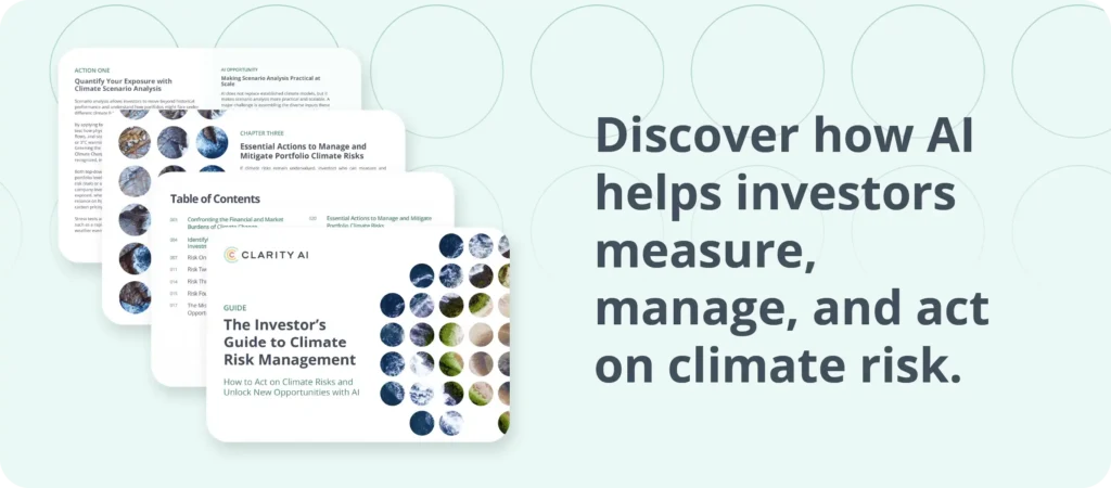 Möchten Sie einen tieferen Einblick in die Instrumente und Rahmenwerke für das Management dieser Risiken erhalten? Laden Sie The Investor's Guide to Climate Risk Management um zu erfahren, wie KI Risiken in umsetzbare Investitionserkenntnisse umwandeln kann.