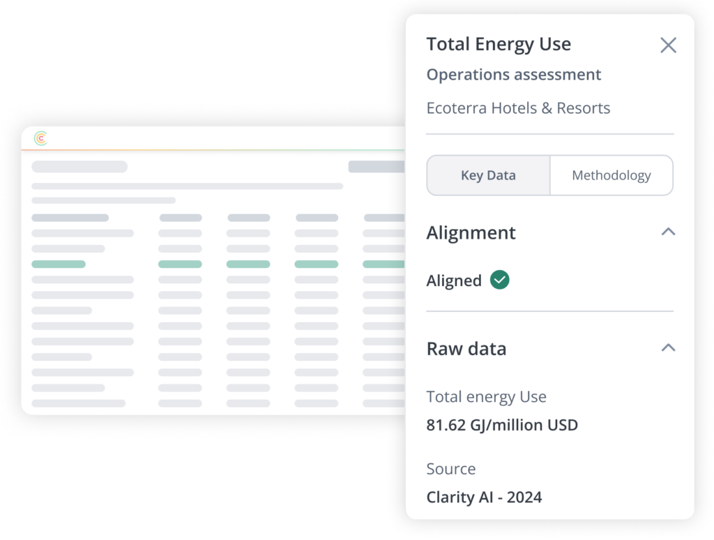 La nostra metodologia è pienamente fondata su ricerche pubblicamente disponibili di istituzioni globali affidabili, tra cui gli SDGs delle Nazioni Unite, il GRI, l'OMS, l'IPCC, la FAO e la Banca Mondiale. È basata su questioni, intrinsecamente tematiche e progettata per garantire coerenza, spiegabilità e tracciabilità. A differenza delle soluzioni opache o black-box, Clarity AI fornisce dati trasparenti e verificabili, in modo che i clienti possano spiegare con sicurezza le decisioni di allineamento e difenderle sotto esame.