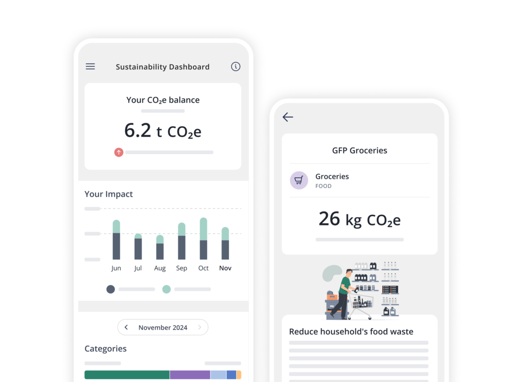 Integrate a climate engagement journey into your banking app, guiding customers from awareness to action and measurable impact.
